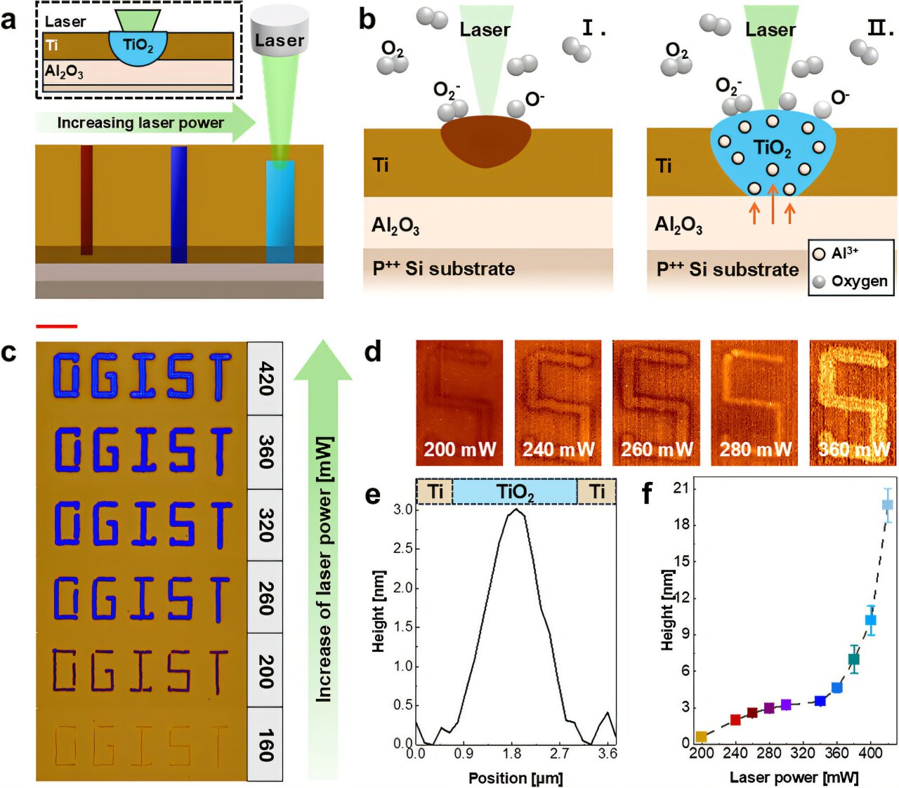 When a film of aluminum oxide (Al2Oh3) is placed on top of a thin metal film of titanium (Ti) and irradiated with a laser for a few seconds, aluminum ions diffuse inside as titanium combines with oxygen to convert into titanium oxide (TiO2In this process, the balance of electrons is broken down, which creates holes and subsequently forms a p-type semiconductor in which holes, instead of electrons, carry current.