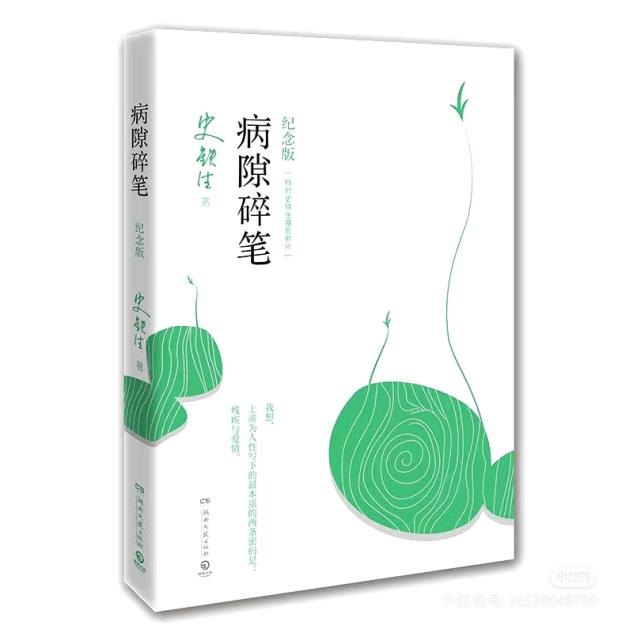 推荐语:《病隙碎笔》是史铁生在与病魔作斗争时期写出的书,他用残缺的身体写出了最健全的思想,拼凑出了最伟大的人生观。他写爱:"爱,原就是自卑奔暗投明的时刻。"正确的爱是良性的互相教育,是强有力的向上攀爬,是治愈彼此人生滚烫的阳光;他写死亡:"死不是一件急于求成的事,是一个必然会降临的节日。"无论生活多苦,我们都应该很纯洁很甜美的活到太阳下山;他写孤独:"生命,至少有一半时间是在黑夜中。夜深人静,心神仍在奔突和浪游。"是啊,只有在夜深人静时,我们才有了真正属于自己的时间;他写做自己:"且视他人之疑目如盏盏鬼火,大胆地去走你的夜路。"在这座现代化的钢铁森林中,我们行色匆匆,却时常忘记与自己独处。我们总说,人总是在无限接近幸福的时候才最幸福,史铁生却说你若永远地走向他,你便永远都在他的光照之中。希望这本书可以让你感受到文字的力量,被文字治愈