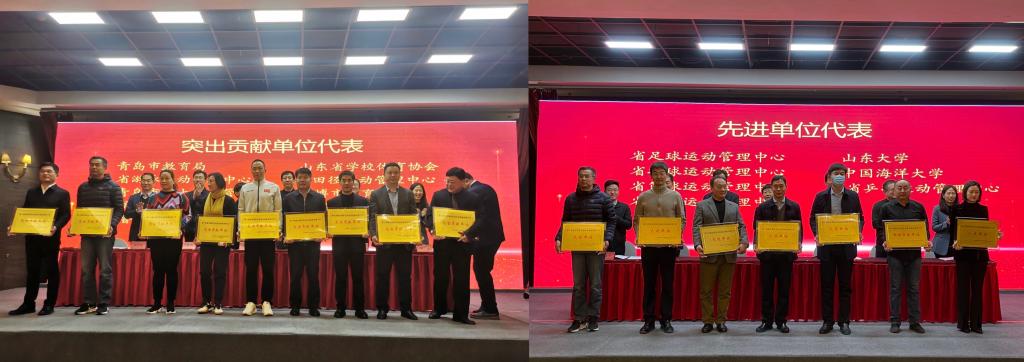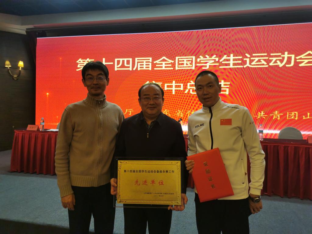 会议由山东省体育局副局长张柄臣主持,团省委副书记尚胜波宣读《山东省教育厅山东省体育局共青团山东省委关于对第十四届全国员工运动会先进集体先进个人等进行表扬的通报》,省教育厅、体育局、团省委领导向先进集体、先进个人颁发奖牌、证书。金永泉代表青岛市水上运动管理中心领取了突出贡献单位奖牌,楚晓东代表bevictor1946韦德官网领取了先进单位奖牌,同时两人作为代表领取了先进个人、优秀教练员证书。