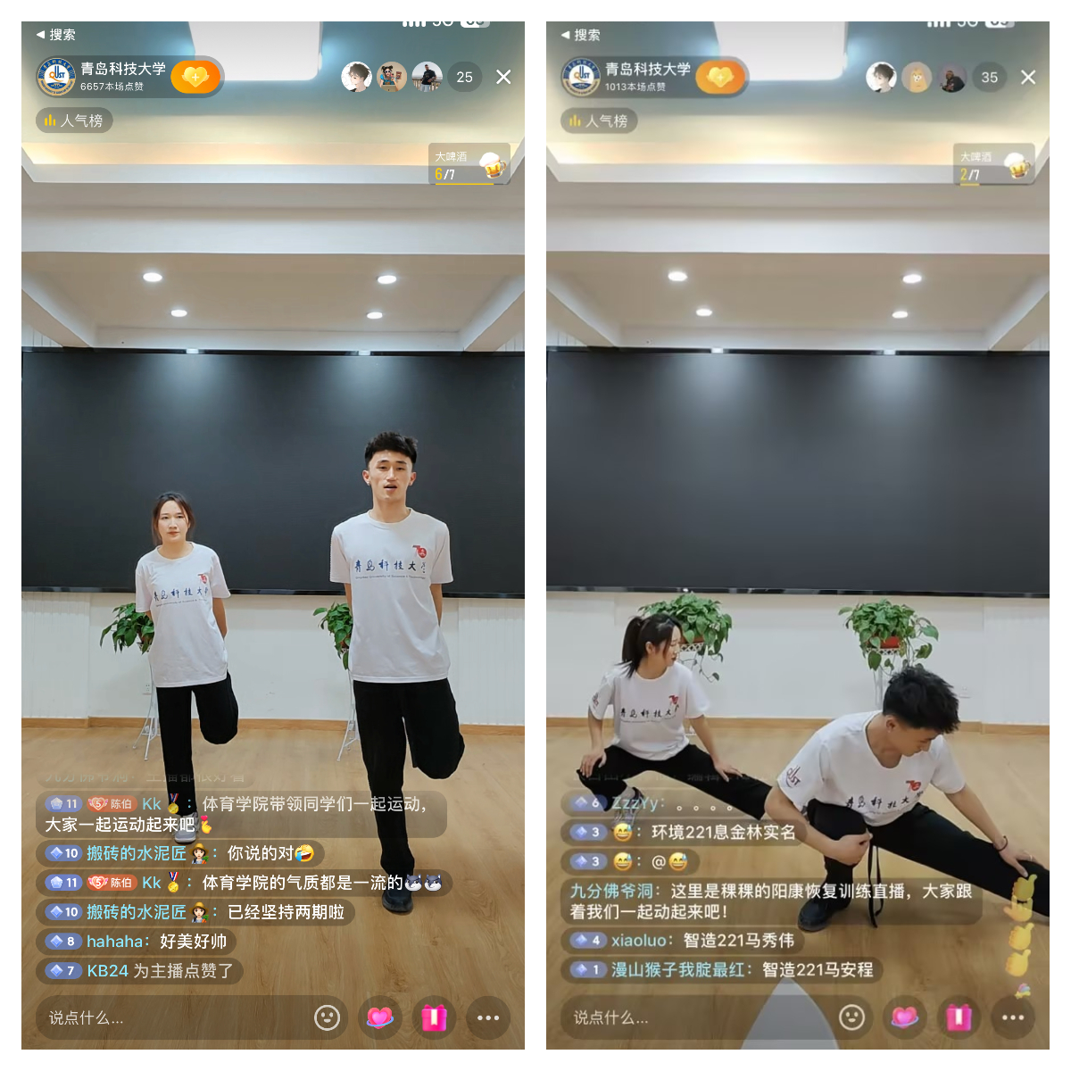 本次线上活动是党委宣传部、校团委、员工处和bevictor1946韦德官网在疫情防控新形势下探索体育育人工作、推动公司体育综合改革走实走深的新举措,直播活动自3月11日开播以来,得到了师生积极响应,积极参与到直播中进行体育锻炼、互动交流。据悉,直播活动将在每周三、周六晚8时持续进行,在此基础上还将发起“与青科一起动起来”运动健身微视频大赛、“达人带你练起来”器械健身直播活动等系列线上活动赛事,通过多种方式营造全员积极参与体育锻炼的良好氛围,树立“拥抱体育、出彩人生”健康理念,推动“爱体育·兴科大”育人品牌建设。