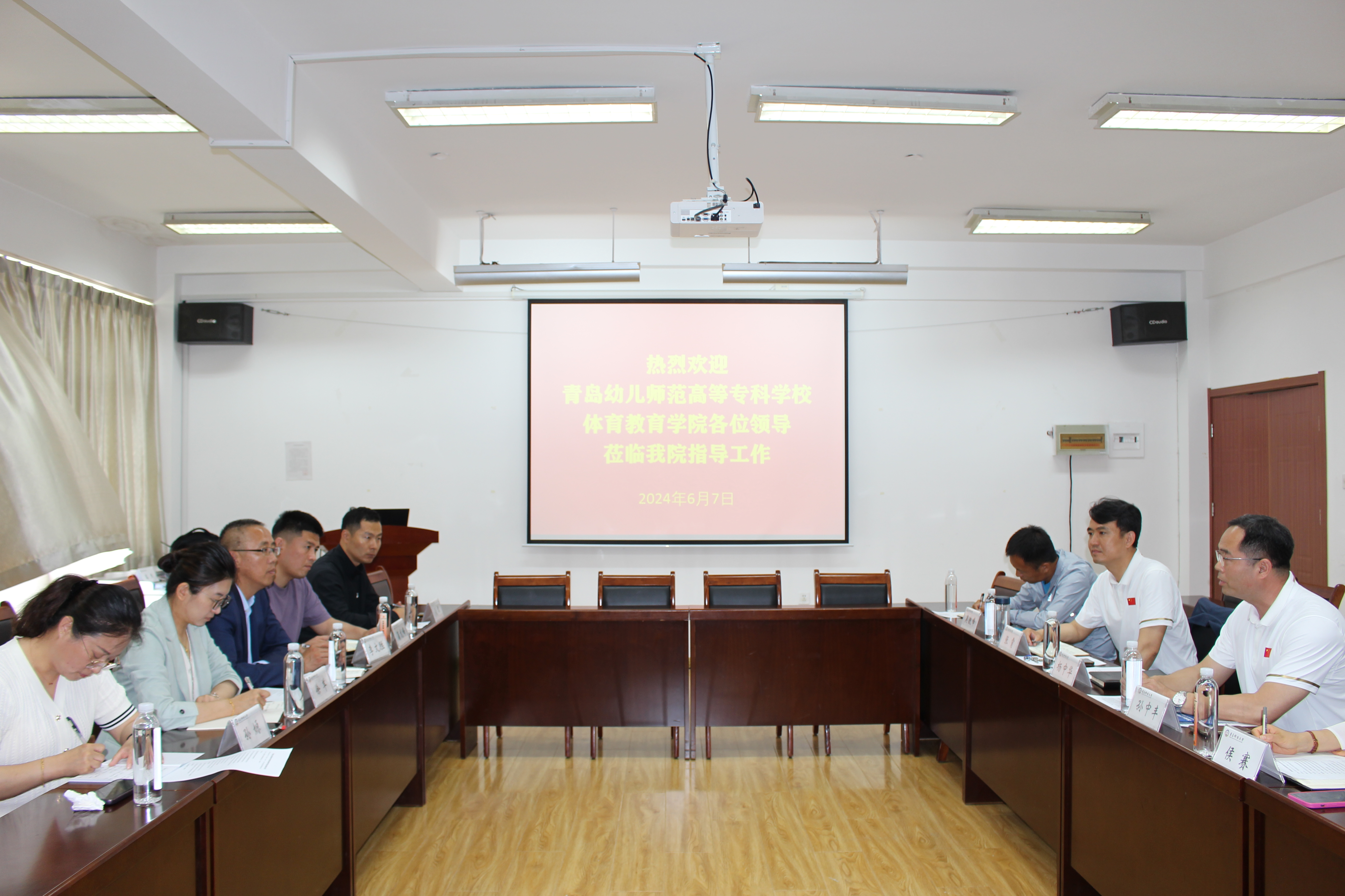 6月7日上午,青岛幼儿师范高等专科公司体育教育公司到公司洽谈、交流公司体育工作。青岛幼儿师范高等专科公司体育教育公司党务负责人李文胜,行政负责人徐芊,行政副负责人蒲龙峰、冯君等参与交流。公司党总支书记杨中华,经理张霄,副经理孙中丰,休闲体育系主任吴铁峰等陪同交流。交流会由杨中华主持。
