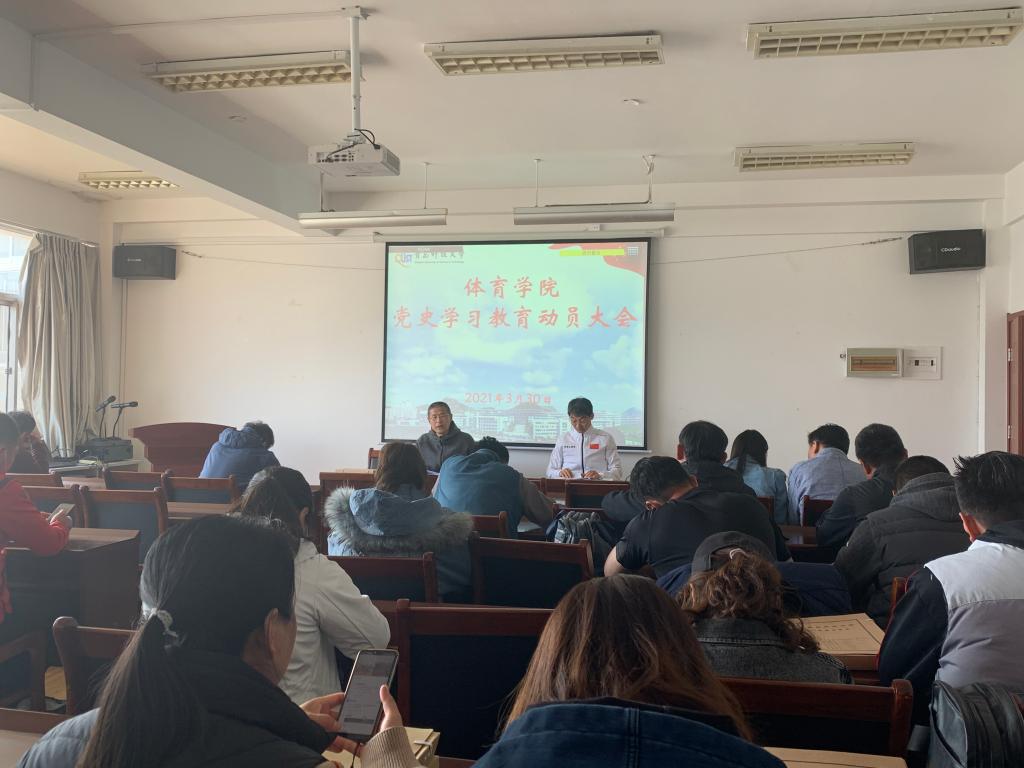 葛振营首先传达了公司党史学习教育动员大会的主要精神,领学了《bevictor1946韦德官网开展党史学习教育的实施方案》并向全体教师宣读了公司党史学习教育实施方案。他指出,全体教职工要高度重视本次学习教育活动,结合近期的体质监测、运动队训练、公体课教学工作迅速行动起来,积极学习,认真学习,做到学史明理、学史增信、学史崇德、学史力行,学党史、悟思想、办实事、开新局,发挥每位自身的优势,助力公司各项事业高质量发展,以优异成绩迎接建党一百周年。